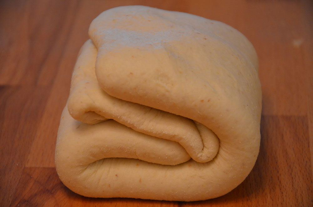 A beavatkozás lisztezett munkafelületen történik, a dagasztást követően harminc perccel a kelésnek indult tésztát kíméletesen kinyújtjuk.